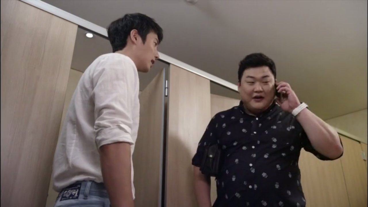 Hoon Jae comenzó a ver el problema, pero de pronto entra al baño Jin Ae y él se